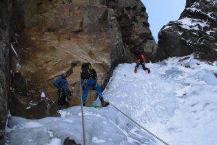 Giornata località da destinarsi in relazione alle condizioni. Tecnica individuale su ghiaccio verticale. Progressione della cordata su ghiaccio verticale. Autosoccorso della cordata su ghiaccio verticale: paranco semplice, mezzo poldo con e senza spezzone. Autosoccorso in valanga: Esercitazioni con ARTVA, pala e sonda. -